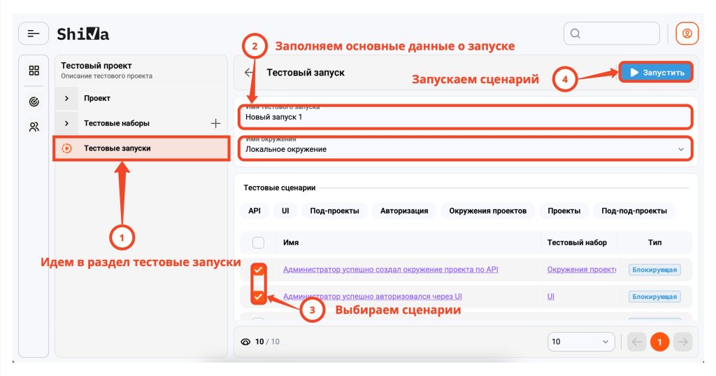 Тестовый запуск — это выполнение произвольного количество тестовых сценариев на одном из окружений проекта