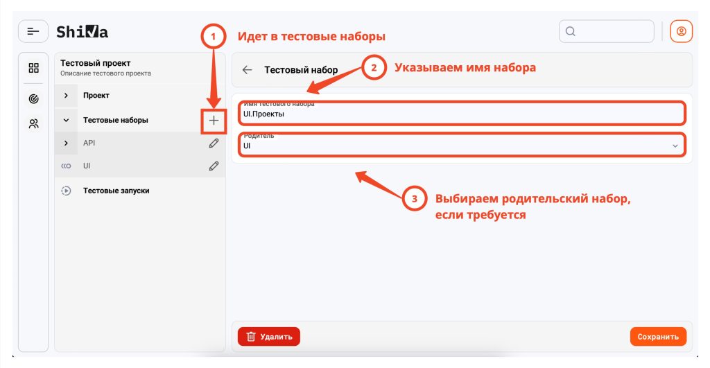 Чтобы создать или редактировать тестовый набор, воспользуйтесь формой: